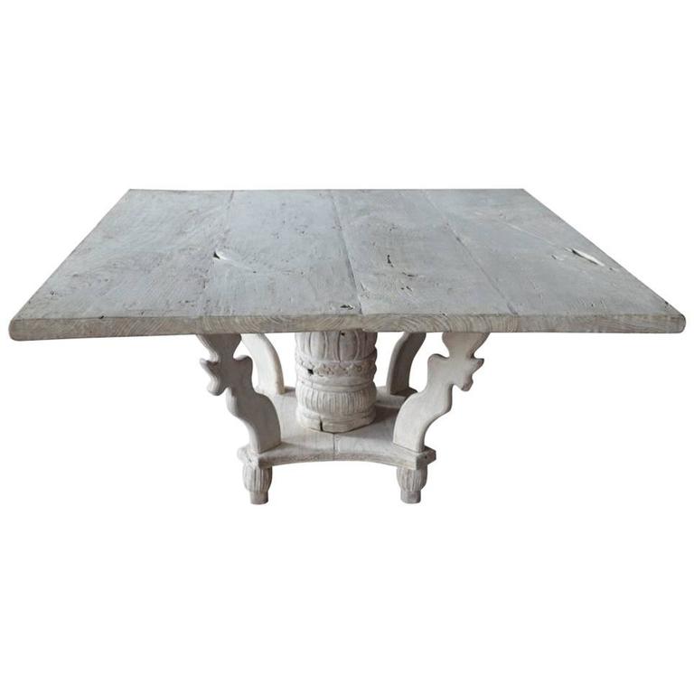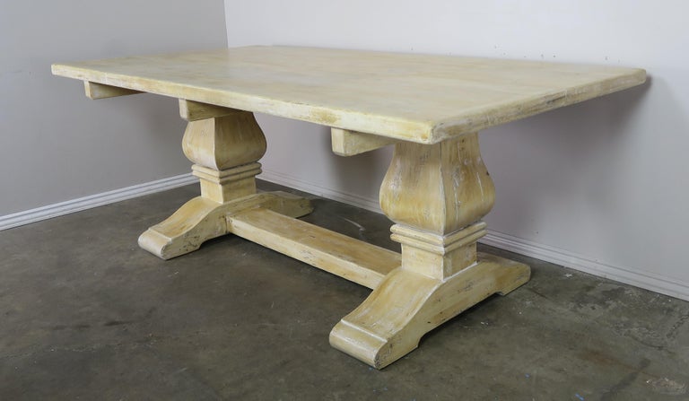 French Bleached Dining Table with Painted Base | Chairish from chairish-prod.freetls.fastly.net We also have solid wood japanese style low dining table / breakfast table set for your choice of comfort. Wooden table on blurred kitchen bench background. A wide variety of natural wood round dining table options are available to you, such as general use, material, and feature.